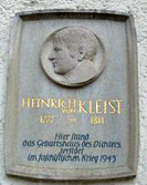 Um den Schülerinnen und Schülern einen Zugang zu Kleists Leben zu ermöglichen, wird ihnen ein Word-Dokument Arbeitsblatt [doc] [48 KB] mit den wichtigsten Lebensdaten und einer Linkliste zur Verfügung gestellt. Das Word-Dokument enthält gelb markierte Textstellen. Jede dieser Textstellen ist mit einem Kommentar versehen, der eine Aufgabenstellung enthält. Die Schülerinnen und Schüler übernehmen die Lebensdaten in eine PowerPoint-Präsentation und verlinken die markierten Textstellen mit den geforderten Zusatzinformationen. Die Linkliste hilft ihnen, diese Zusatzinformationen zu finden. Die Abbildung der Gedenktafel basiert auf dem Bild 2006-02 Frankfurt (Oder) 34.jpg aus der freien Enzyklopädie Wikipedia und steht unter der GNU-Lizenz für freie Dokumentation. Der Urheber des Bildes ist Sicherlich .