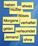 Die erste Annäherung an den Roman erfolgt über einen produktiven Umgang, ein „Spielen“ mit dem ersten Satz des Romans. Informationen zur Vorgehensweise finden sie hier [doc]