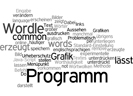 Als experimentelle Methode stellen wir hier "Wortwolken" vor, die mit dem englischsprachigen Programm "wordle" erzeugt werden. Dabei wird nach Eingabe des Textes online per Java-Script ein Bild erzeugt, das die Worthäufigkeit grafisch darstellt: Wörter, die häufiger vorkommen, erscheinen größer. Das Aussehen der Grafiken lässt sich im Programm verändern. Problematisch ist manchmal die Standard-Einstellung, die die "common words" unterdrückt. Dies lässt sich im Programm unter dem Menüpunkt "language" mit dem Befehl "Do not remove common words" unterdrücken. Die Bilder lassen sich ausdrucken oder speichern und unterliegen der "Creative Commons Attribution 3.0" . Die Grafik links zeigt übrigens diesen Text als mit "wordle" erzeugte Grafik an. |
