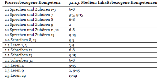 - Sehen Sie in der Synopse (vgl. Kapitel 2.4) nach, auf welche Medien sich die der prozessorientierten Kompetenz zugeordnete inhaltsbezogene Kompetenz hauptsächlich bezieht (‚Vornehmlicher Medienbezug‘). Arbeiten Sie den entsprechenden Abschnitt über sachanalytische, didaktische und methodische Aspekte in Kapitel 1 durch.