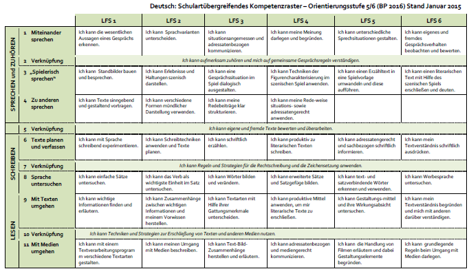 Schulartübergreifendes Kompetenzraster – Orientierungsstufe 5/6 (BP 2016) Stand Januar 2015: siehe Reader zur Schreibwerkstatt S.11