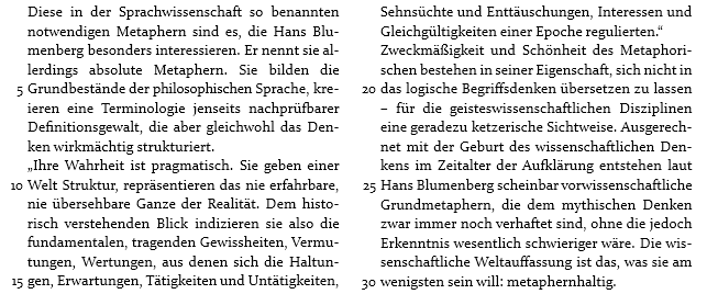 Das Zitat stammt aus der Deutschlandfunk-Sendung Essay und Diskurs „Der Geist ist sich selbst voraus. Die Metaphernlehre des Philosophen Hans Blumenberg“ von Michael Reitz am 29.7.2012, https://www.deutschlandfunk.de/der-geist-ist-sich-selbst-voraus.1184.de.html?dram:article_id=216424