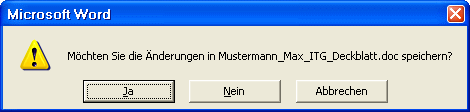 10. a) Word: Beantworte die Frage: „Möchten Sie die Änderungen...speichern“ mit: „Ja“