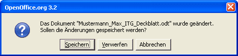 b) OpenOffice: Beantworte die Frage: „Sollen die Änderungen gespeichert werden“ mit Klick auf „Speichern“:
