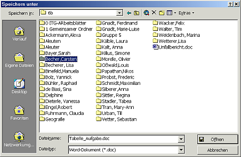 Speichere zu Beginn die noch leere Seite als Datei in deinem Netzwerkordner: