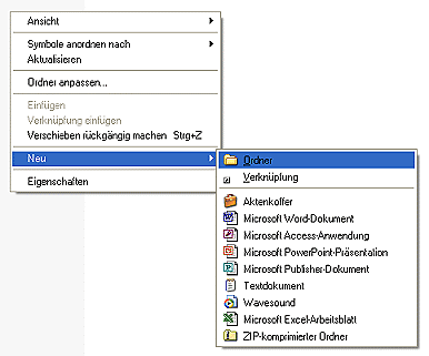 - Lege jetzt rechts darin einen neuen Ordner mit deinem Namen an : Im Fenster rechts auf eine leere Stelle mit der rechten Maustaste klicken: „ neu “> „ Ordner “ (wie auf den Bildern unten) wählen
