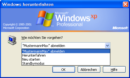 Bitte warten, bis der Rechner sich von selbst ausgeschaltet hat.