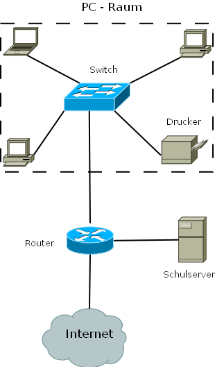 Das Netzwerk dient dem Datenaustausch, der gemeinsamen Nutzung von Daten und Geräten (Drucker, CD/DVD-ROM, Fax, Mail...) und der Kommunikation.