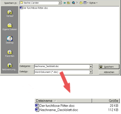 Schreibe unter „Dateiname“: Nachname_Vorname_Deckblatt -> Speichern