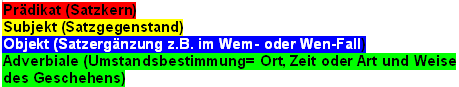 Zur Erinnerung sind hier die Farben der Satzglieder: