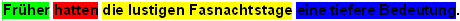 früher eine tiefere Bedeutung die lustigen Fastnachtstage hatten.