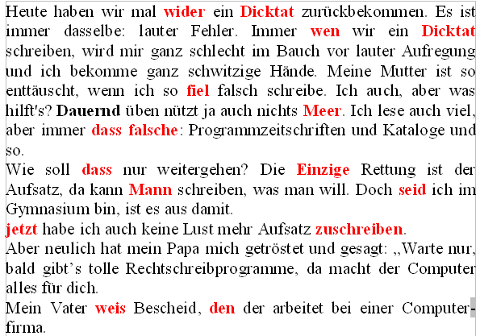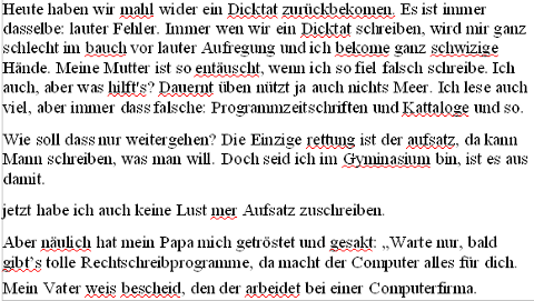 Versuche nun in dem Text unten die rot angestrichenen Wörter zu verbessern. Dabei kann dir der Computer aber nicht mehr helfen!