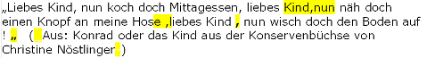 Wenn du diese Regeln nicht beachtest, kann es zu unschönen Schreibweisen kommen (Komma oder sonstiges Satzzeichen am Anfang einer Zeile oder falsche Redezeichen), wie z.B. hier zu sehen: