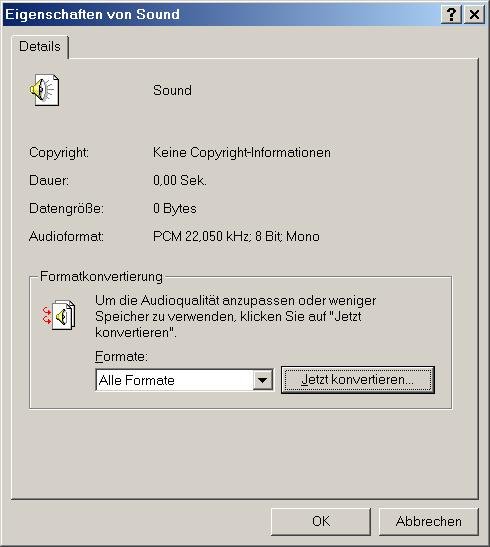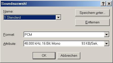 Es können bei Punkt 5 unter „Attribut“ auch niedrigere Einstellungen ausgewählt werden, z.B. 16.000kHz 16 Bit Mono; dadurch verringert sich die entstehende Dateigröße, verschlechtert sich aber auch die Aufnahmequalität. Unter 12.000kHz 16 Bit Mono sollte man jedoch nicht gehen.