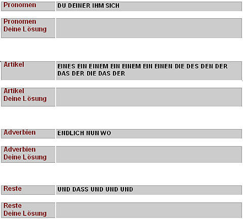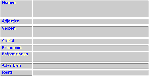 Dazu kopierst du jeweils den Inhalt einer Wortartenzelle (aktivieren, kopieren) in den Zwischenspeicher.