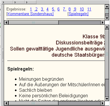 Sobald eine der Dateien (1.htm, 2.htm ... von einer Schülergruppe bearbeitet wurde, kann sie durch Anklicken des betreffenden Links ( 1 , 2 ...) gelesen werden.