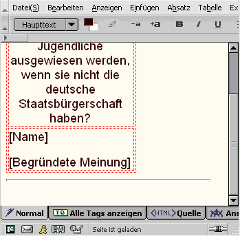 Die Schülerinnen und Schüler können die Dateien sehr einfach bearbeiten mit Netscape Composer (Datei aufrufen, Menü "Datei / Seite beabeiten" auswählen).