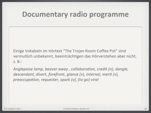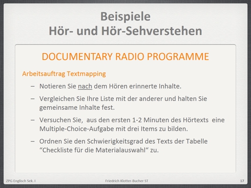 Einführung "Hör- und Hör-Sehverstehen und Filmanalyse": Herunterladen [ppt] [1,1 MB]