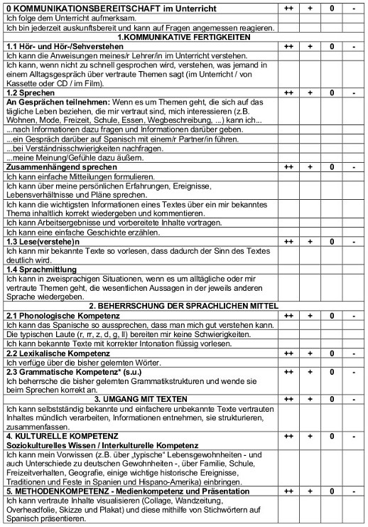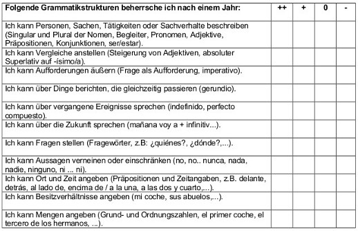 Selbsteinschätzung zum Mündlichen nach einem Lernjahr in Spanisch