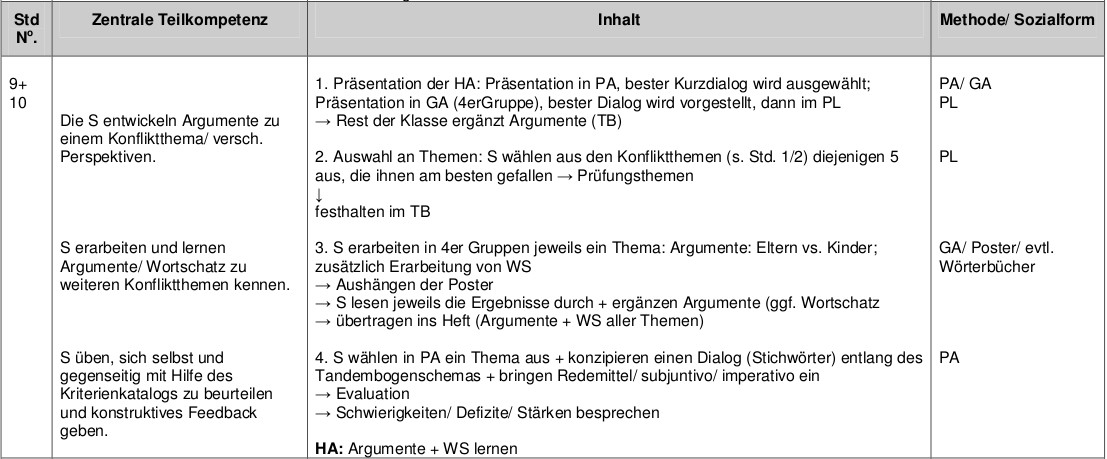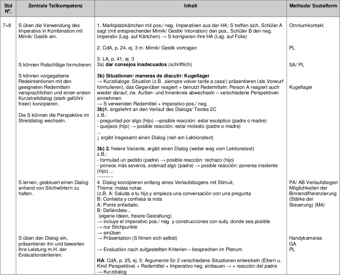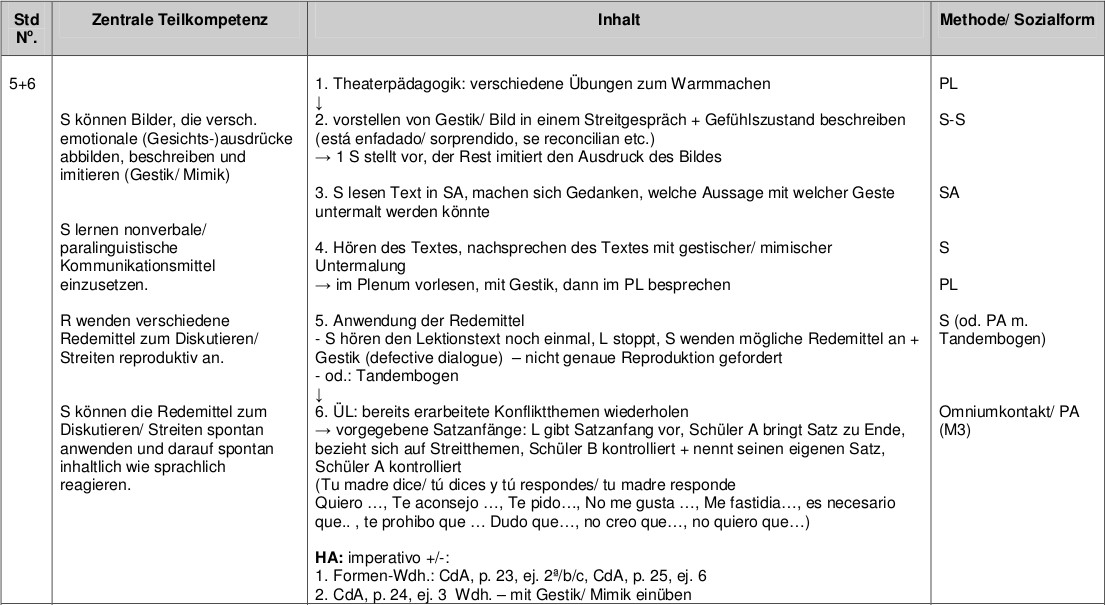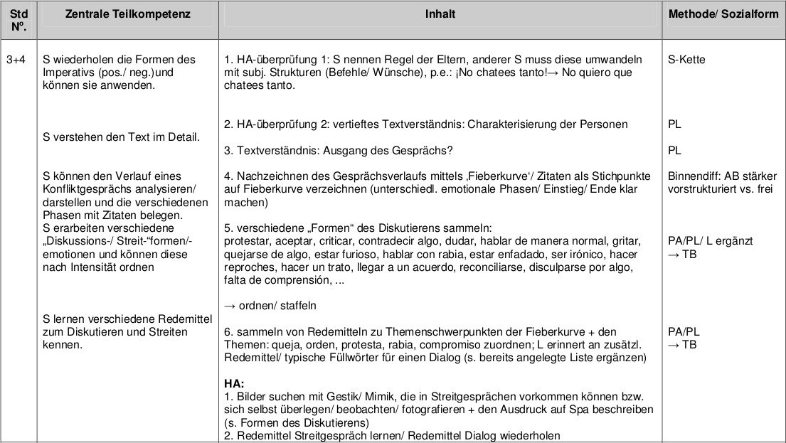 Planung der Unterrichtseinheit: dialogisches Sprechen: Konfliktgespräche mit den Eltern (ausgehend von Lektion 2C, Encuentros, Nueva Edición, Bd. 2, Berlin (Cornelsen) 2004.)