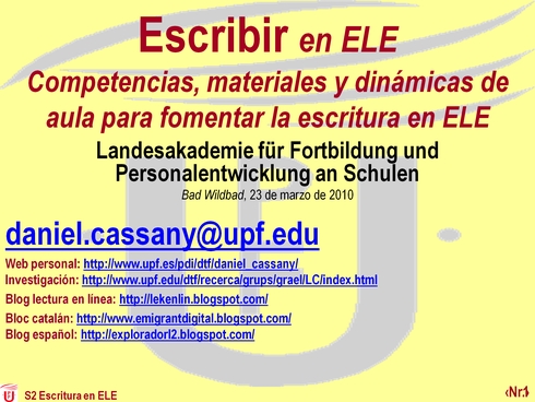 Vortrag "Escribir en ELE": Herunterladen [ppt] [7.8 MB] [53 Folien]