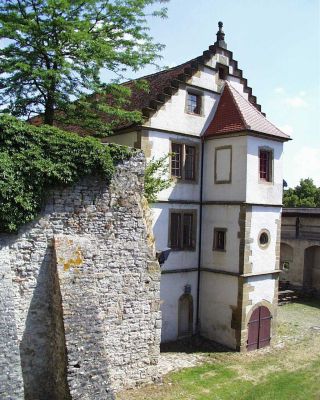 Der Gebsattelbau (Nordseite) ist direkt an die Klostermauer angebaut. Er konnte nach der Erweiterung drei Kurien für Stiftsherren aufnehmen. Zuvor war der kleinere Bau als Propstei in Funktion. Das prächtige Renaissanceportal weist an seiner Nordseite einen Wappenstein mit dem vollständigen Comburger Wappen und dem Neustetterwappen auf. Erstellt wurde es 1587 von dem Würzburger Bildhauer Erhard Barg. Heute befindet sich hier der Eingang zur Gebsattelschenke für die Hausgäste der Landesakademie.