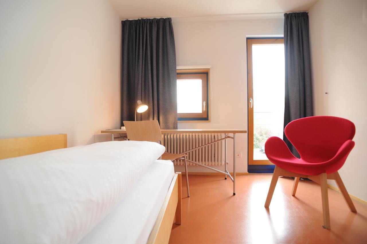 Die bewusst schlicht gestalteten Hotelzimmer, alle als Einzelzimmer mit Dusche und WC konzipiert, erleichtern den Ausstieg aus dem hektischen Schulalltag und fördern die Regeneration und das Einlassen auf die Lehrgangsinhalte.