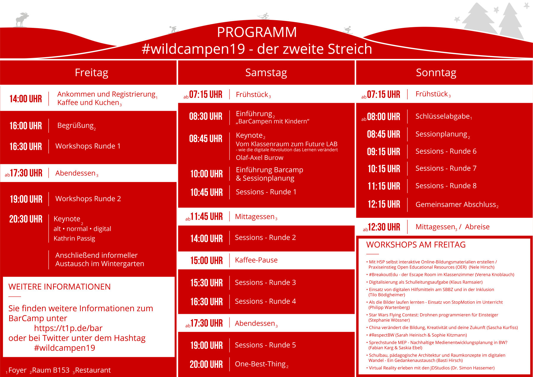 Die Kapazitäten waren auch bei diesem Mal wieder sehr schnell ausgeschöpft. Wir freuen uns auf das #wildcampen19 und die vielen tollen Sessions. Für alle, die keinen Platz ergattern konnten: Keine Frage, wir kommen wieder!
